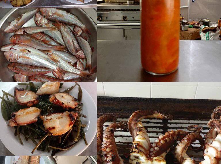 χταπόδι, γαρίδες, καλαμάρια, αλλά και πιάτα της ώρας με ψάρια και θαλασσινά που μόλις ήρθαν από το λιμάνι.